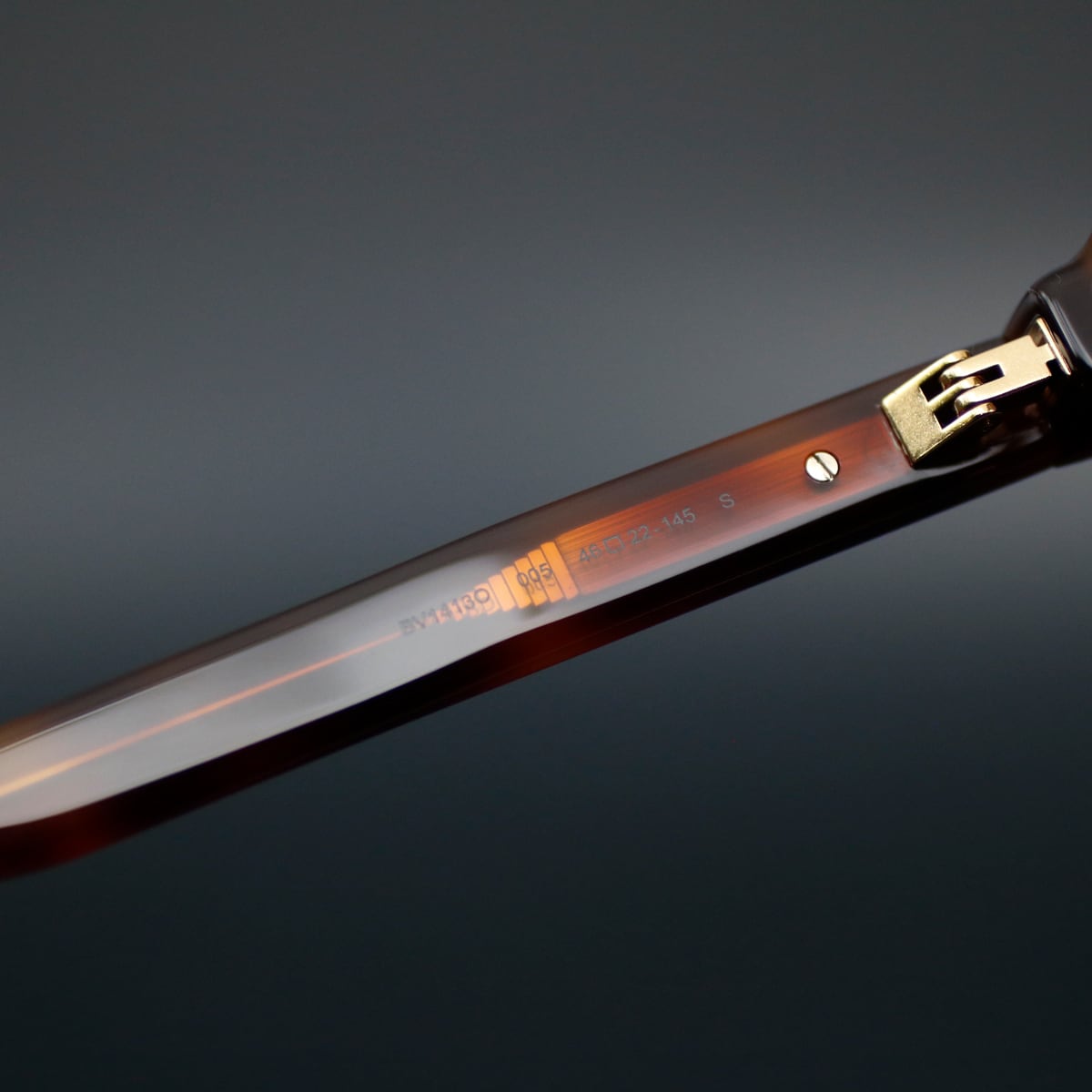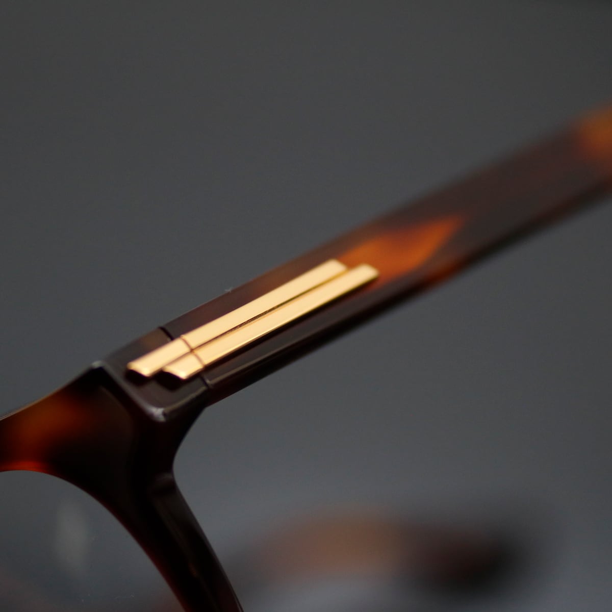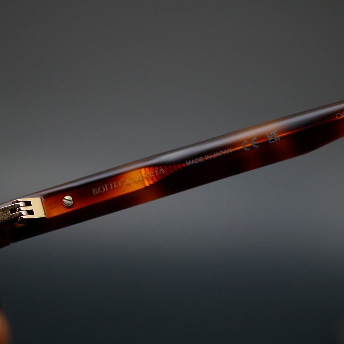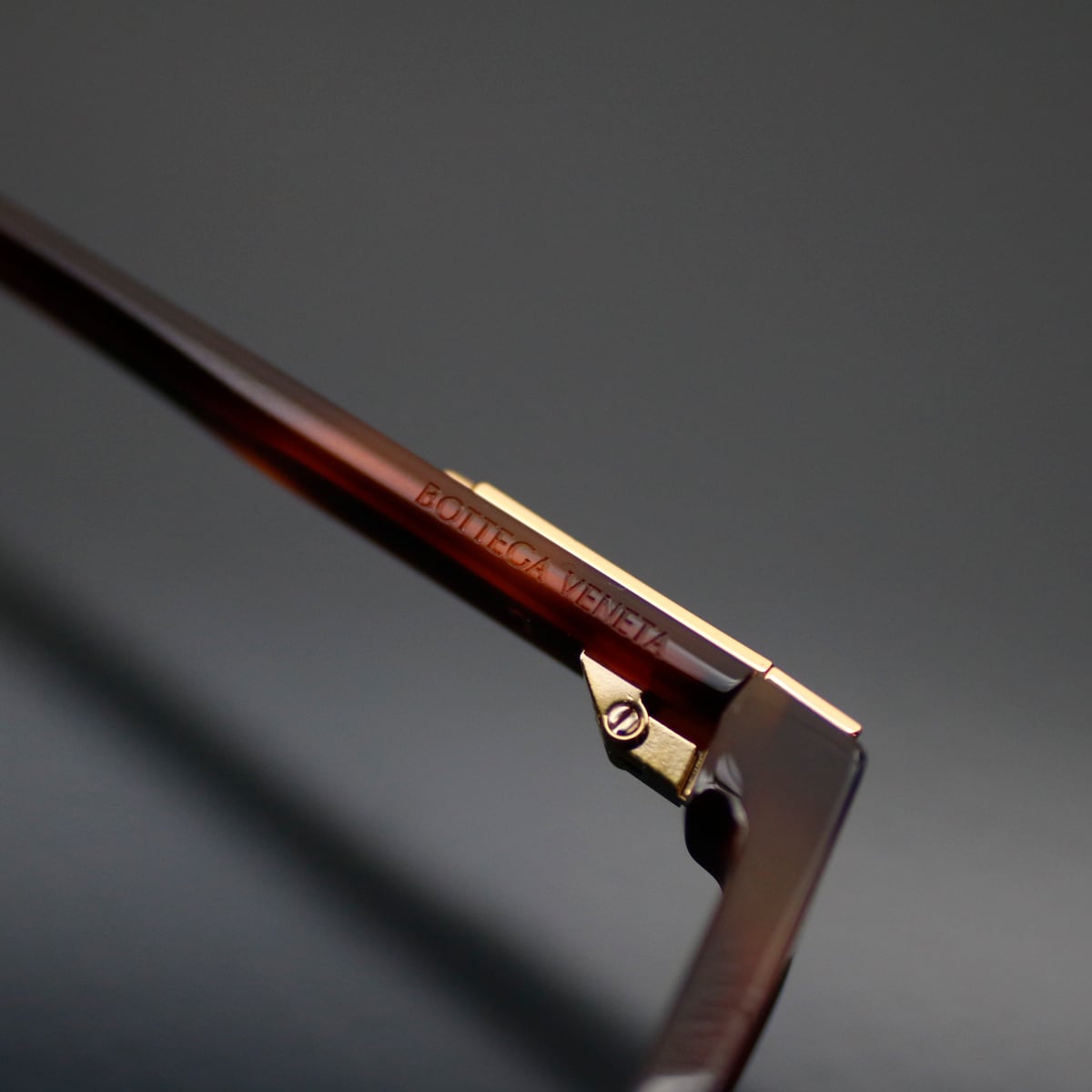 サイドにはBOTTEGA VENETAの代名詞であるイントレチャートをアイコン化したモチーフをフロントからテンプルに繋がるように配置。