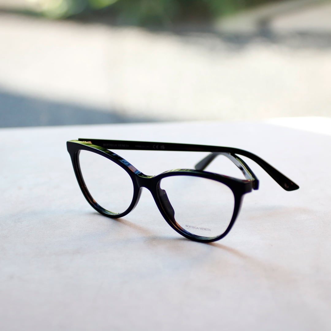 ほどよく釣り上がったレンズシェイプが、どこか懐かしい90年代のカルチャーを感じる、ボッテガヴェネタらしいクワイエットラグジュアリーなアイウェアです。