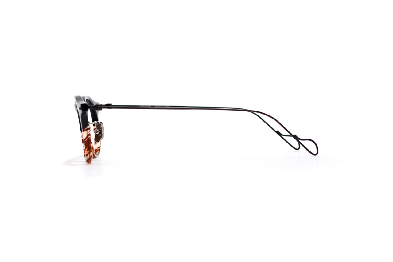 デザインは、少し目尻に向かって垂れたようにすることで抜け感を作ったボストンシェイプをベースに、」一般的なアセテートではなく希少なセルロイドで再構築。細身のラインを保ちながらもフロント幅をしっかり確保することで、顔幅の広いアジア人にも自然にフィットするバランスに仕上げています。