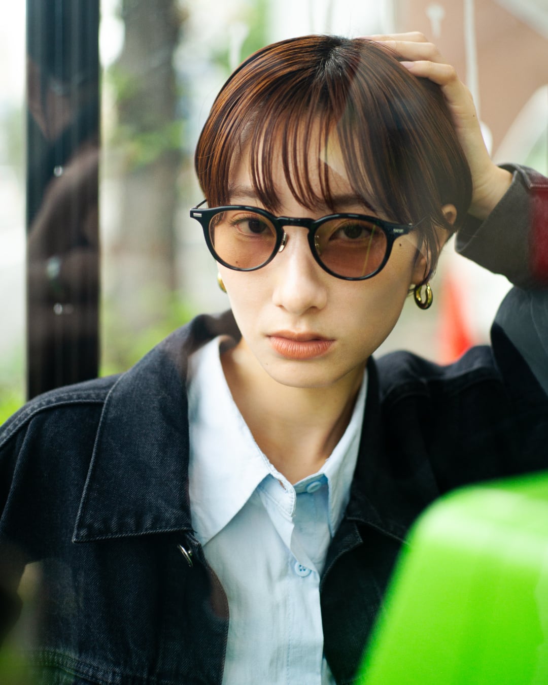デザインは、少し目尻に向かって垂れたようにすることで抜け感を作ったボストンシェイプをベースに、」一般的なアセテートではなく希少なセルロイドで再構築。細身のラインを保ちながらもフロント幅をしっかり確保することで、顔幅の広いアジア人にも自然にフィットするバランスに仕上げています。