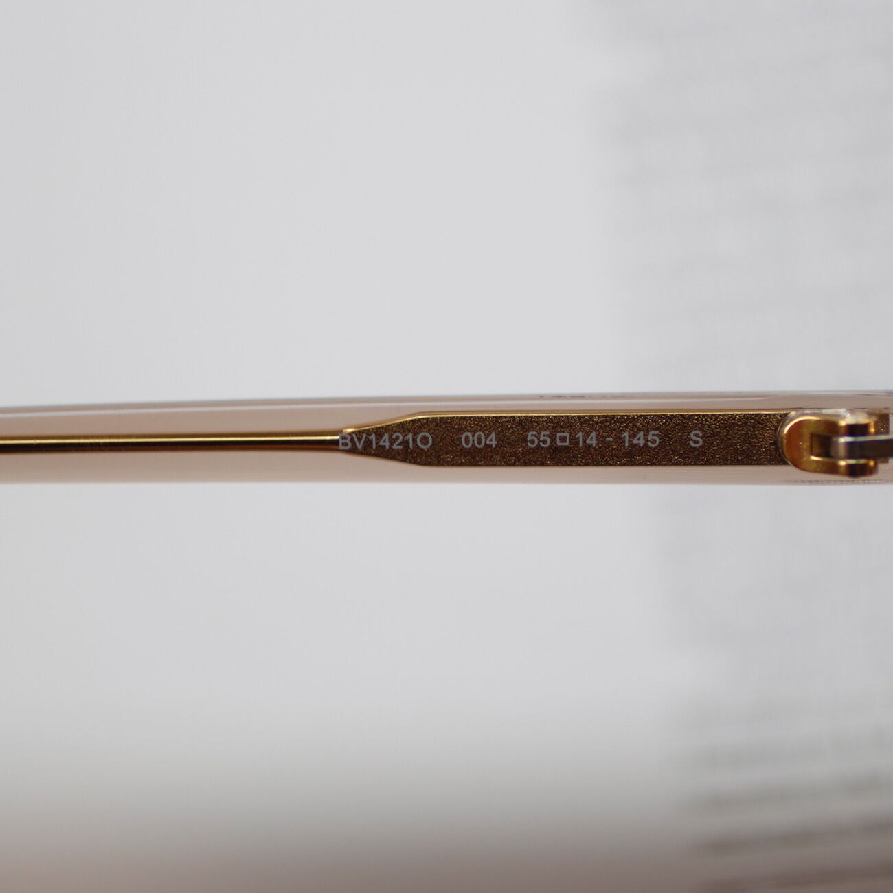 細身のテンプルにはボッテガヴェネタのシグネイチャーであるイントレチャートをアイコン化したモチーフを配置。