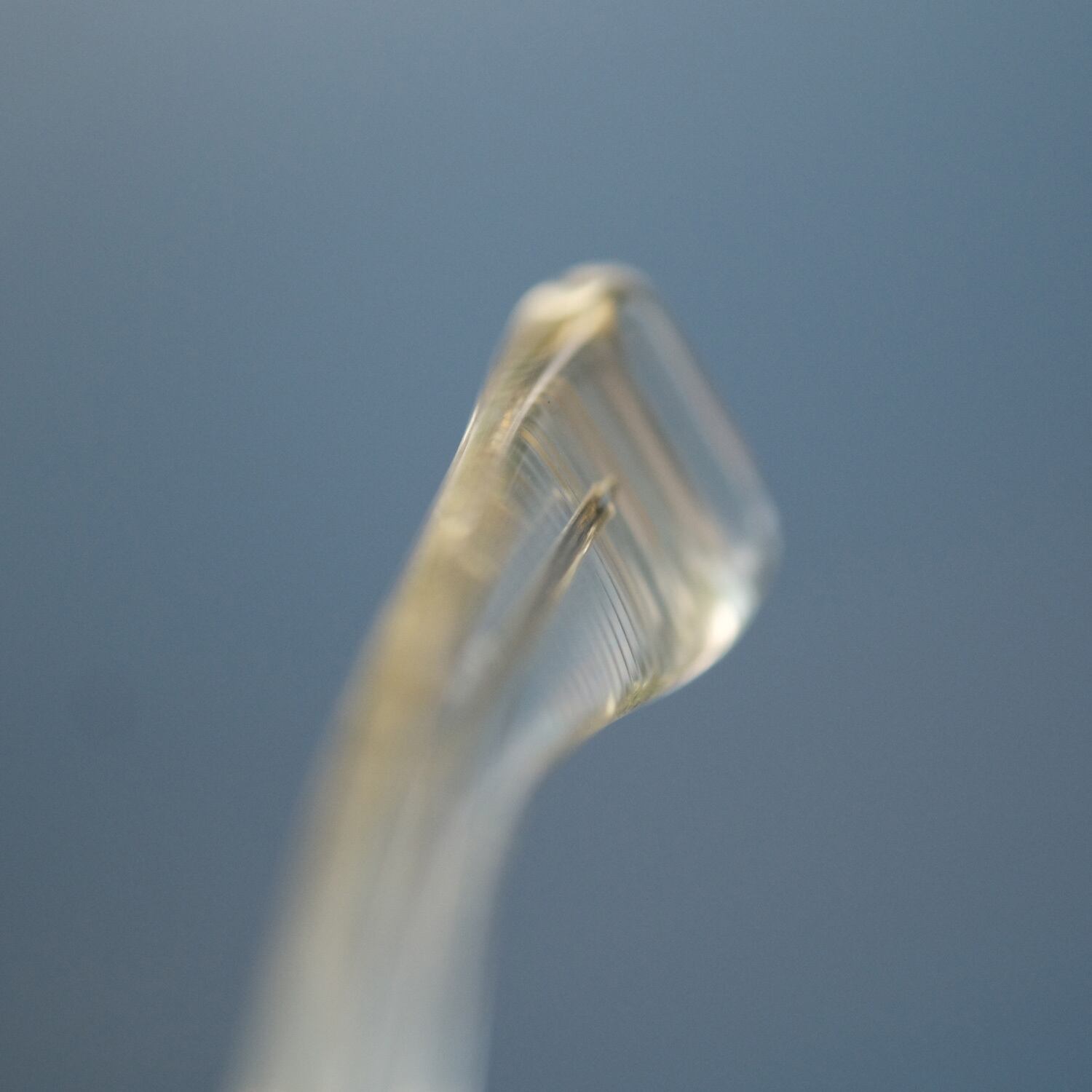 フロントは高密度で変形が少なく、人体からの影響、経年変化がしにくい特殊なプラスックであるHighcount acetate を使用。 L字型の特殊な形状を有した丁番は掛け心地の良さとオプティシャンによる調整のしやすさという目的を追求した結果生まれた形状。アセテートのモダンは適正な重量と側頭部へ接する面積を考慮し、新たに作製されたパーツ。 ボリュームのある生地感からは想像できないような軽さとフィット感を実現。掛け心地が良く、軽く、適正な強度があるという理想的なプロダクトを追求した。