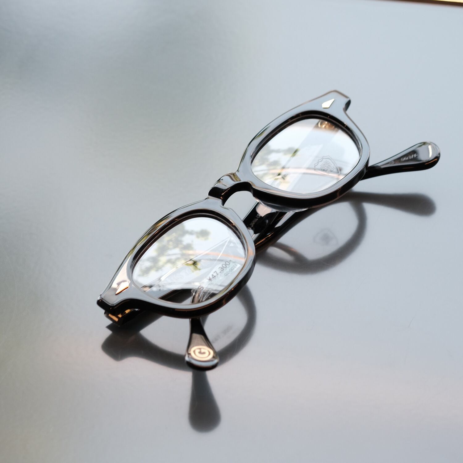 ジョニー・デップをはじめ、多くの著名人が愛用したことで世界的に注目を集めたタートオプティカルの「ARNEL」を忠実に再現したのがジュリアスタートオプティカルの「AR」です。ボストンとウェリントンの中間のようなシェイプとフロントの飾り鋲が特徴。