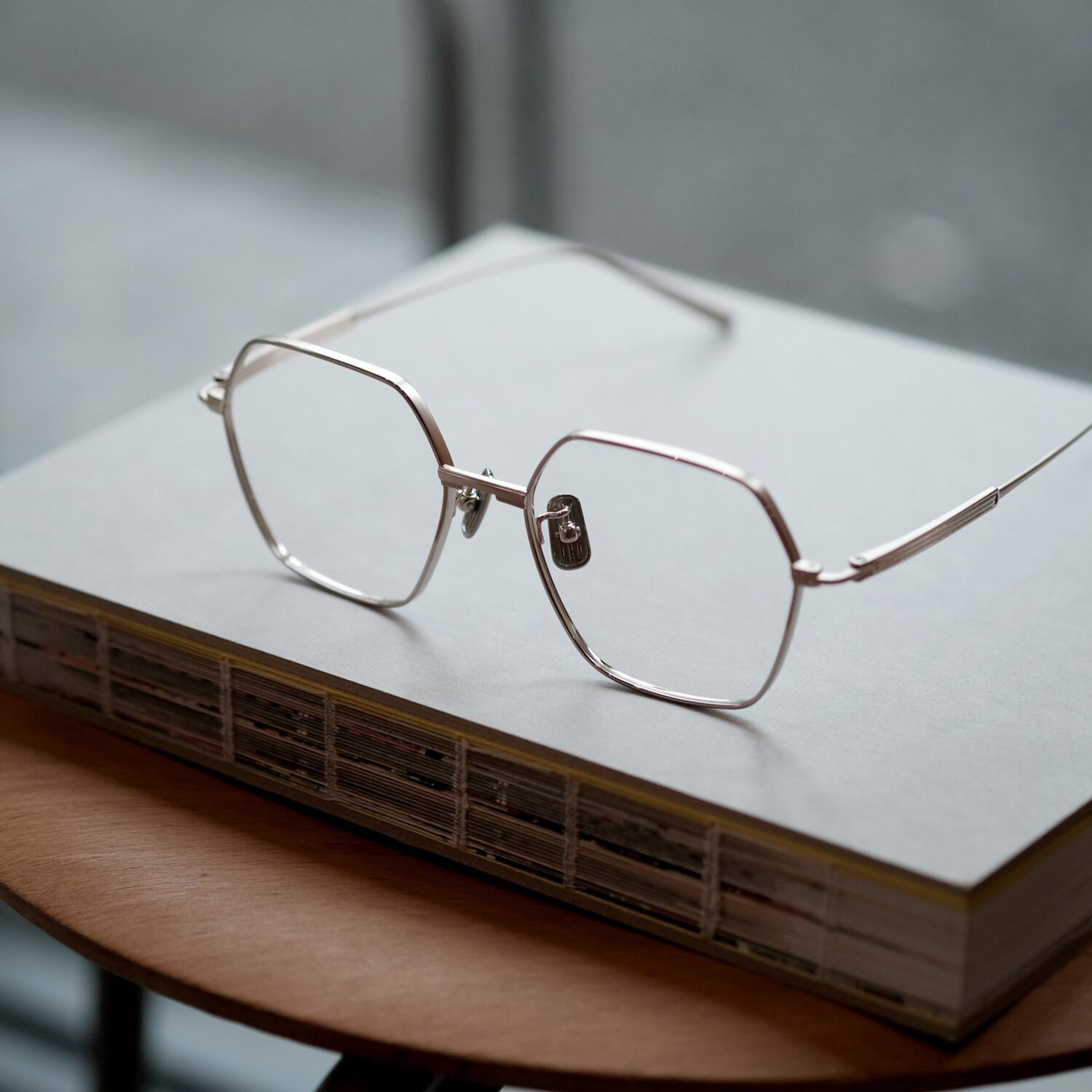 レンズを大きくとったメタルフレームはどこか80年代の空気感。